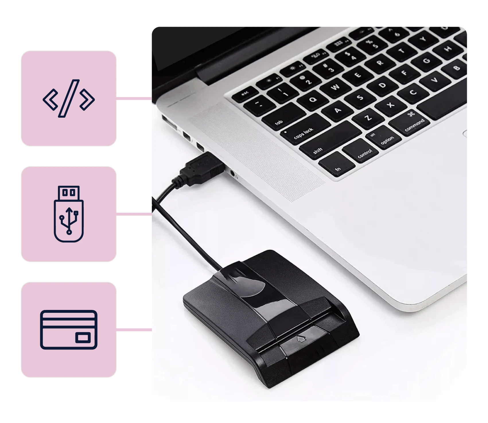 Les clés de signature des utilisateurs sont conservées localement sur des cartes à puce (Carte d'identité) ou des tokens USB (certifé QSCD).